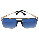 Stylish Gun metal with blue lens Half Rim Square Metal Sunglasses for Men & Women